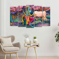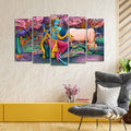 Canvas Wall Painting of Krishna Playing Flute Set of Five