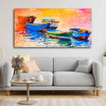Canvas Wall Painting of The Colorful Boats in Shades of Sunset
