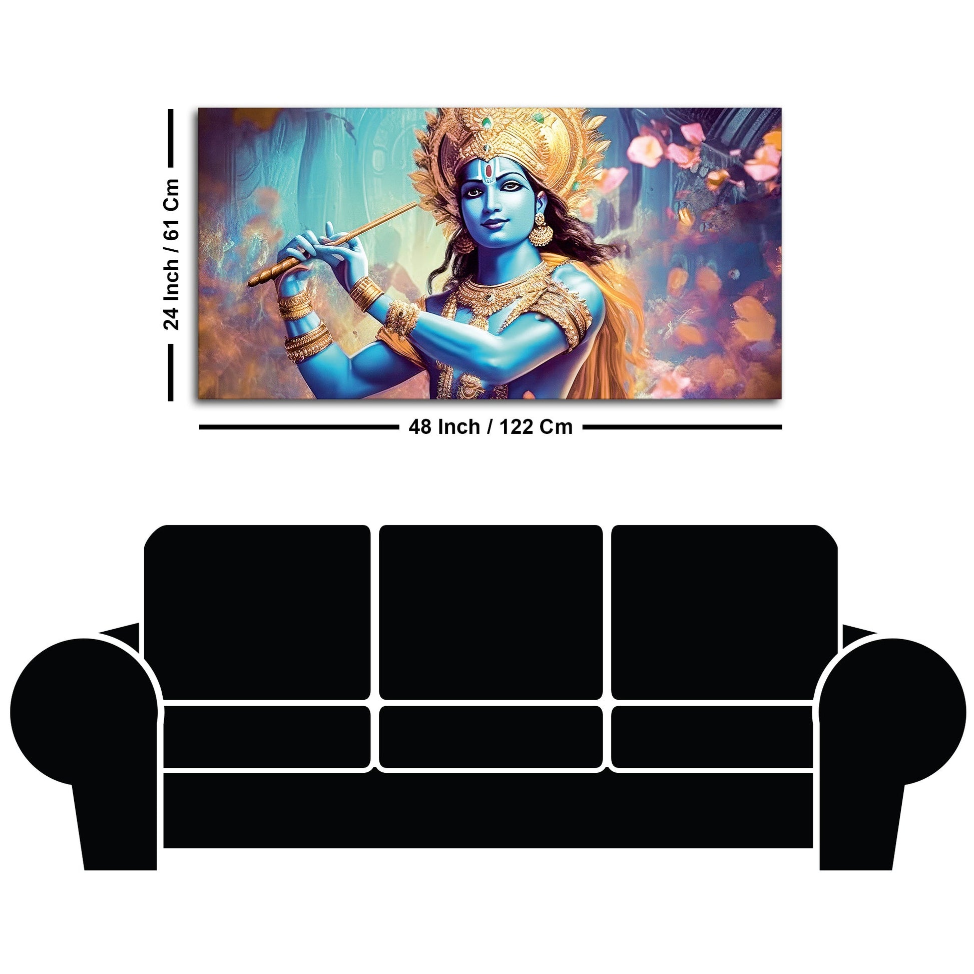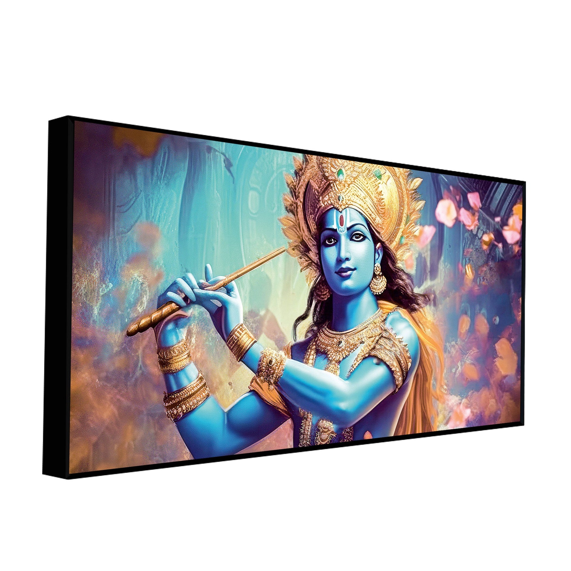 Classic Canvas Wall Panting of Lord Krishna Playing with Flute