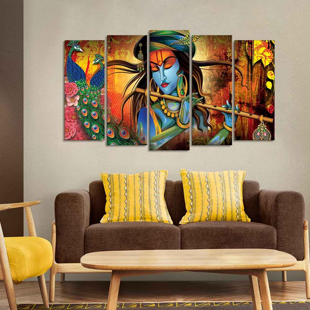 Classic Lord Krishna Premium Wall Painting Set of Five Pieces