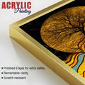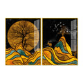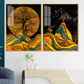 Classic Nature Art with Golden Textured Acrylic Art Floating Wall Painting Set of 2