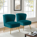 Classic Style Curved Back Blue Velvet Lounge Chair