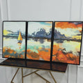 Colorful Art of Sea With Ship Floating Wall Painting Set of 3