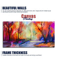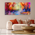 Colorful Autumn Trees Semi Abstract Forest with Lake Canvas Wall Painting