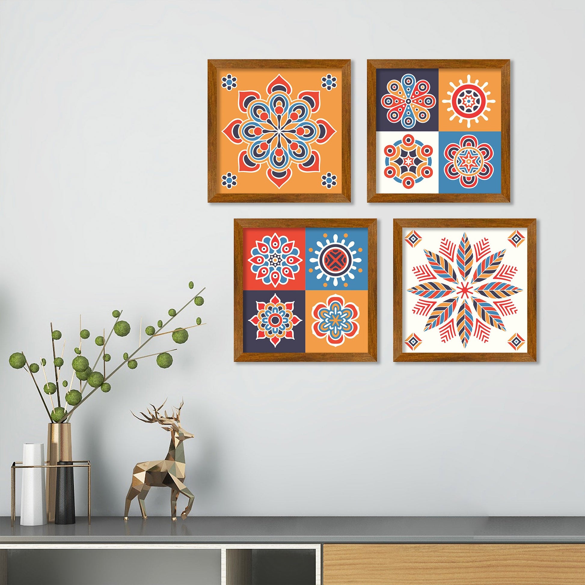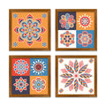 Colorful Floral Mandala Pattern Wooden Wall Frame Set of Four