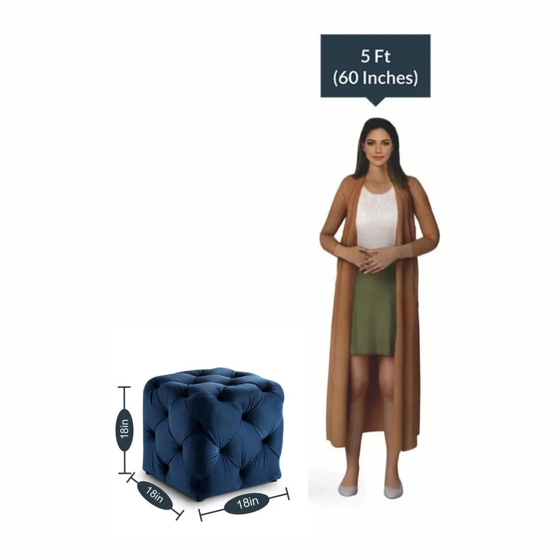 Comfy Square Shaped Dark Blue Artistic Design Tufted Velvet Ottoman