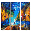 Couple Walking in City Park Canvas Wall Painting of 3 Pieces