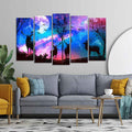 Deer Silhouette Colorful Sky Wall Painting of Five Pieces Set