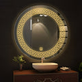 Designer Floral Pattern Art LED Rounded Shape Bathroom Wall Mirror