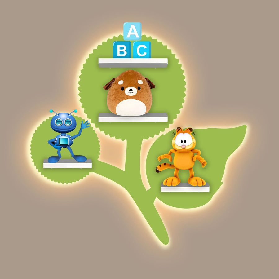 Designer Flower Shape Wooden LED Light Wall Shelf for Kids