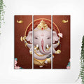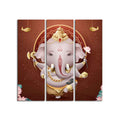 Devotional Lord Ganesha Canvas Wall Painting of Three Pieces