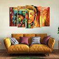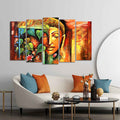 Divine Gautama Buddha Face Premium Canvas Five Pieces Wall Painting