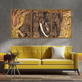 Elephant Family in the Forest Textured Art Floating Canvas Wall Painting Set of Three