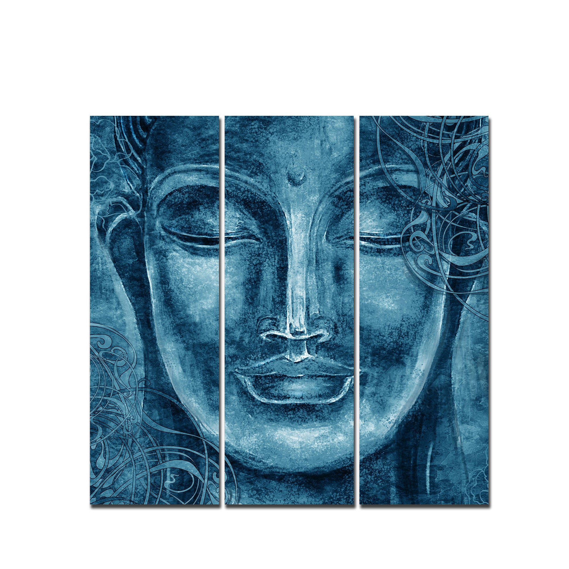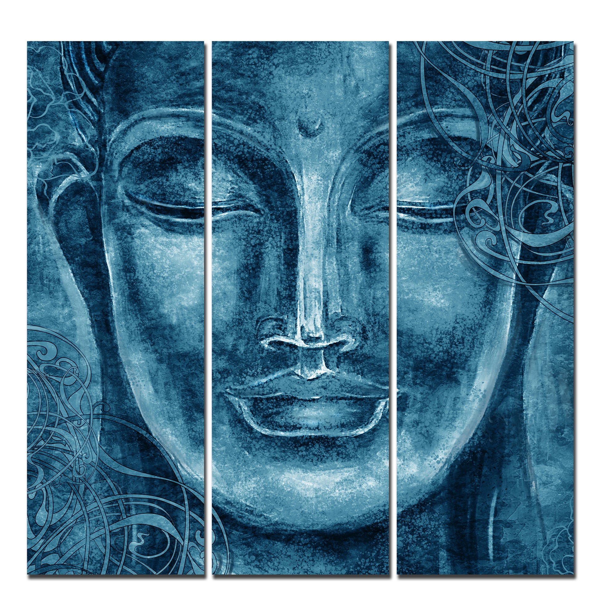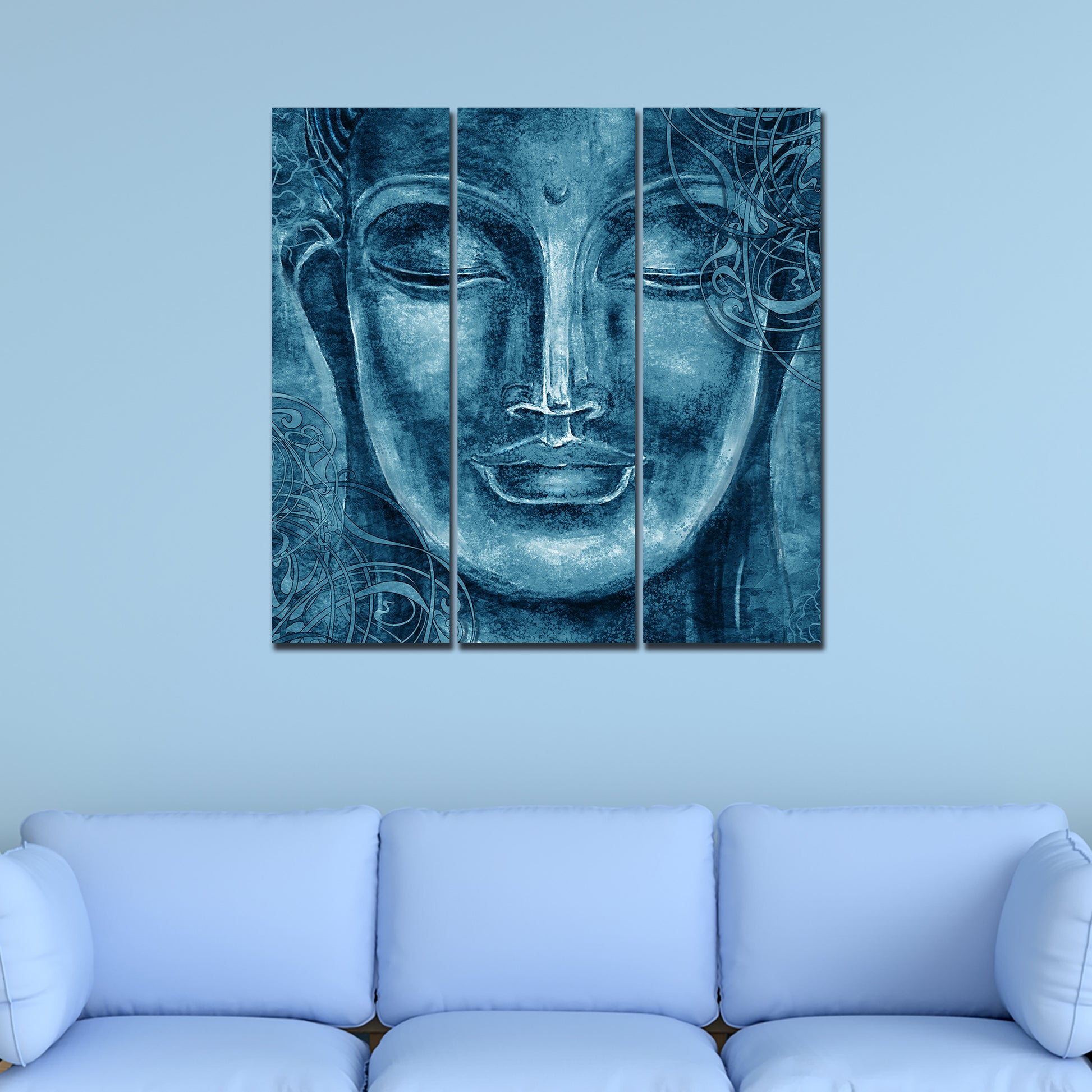 Face Sculpture of Buddha Wall Painting Three Pieces