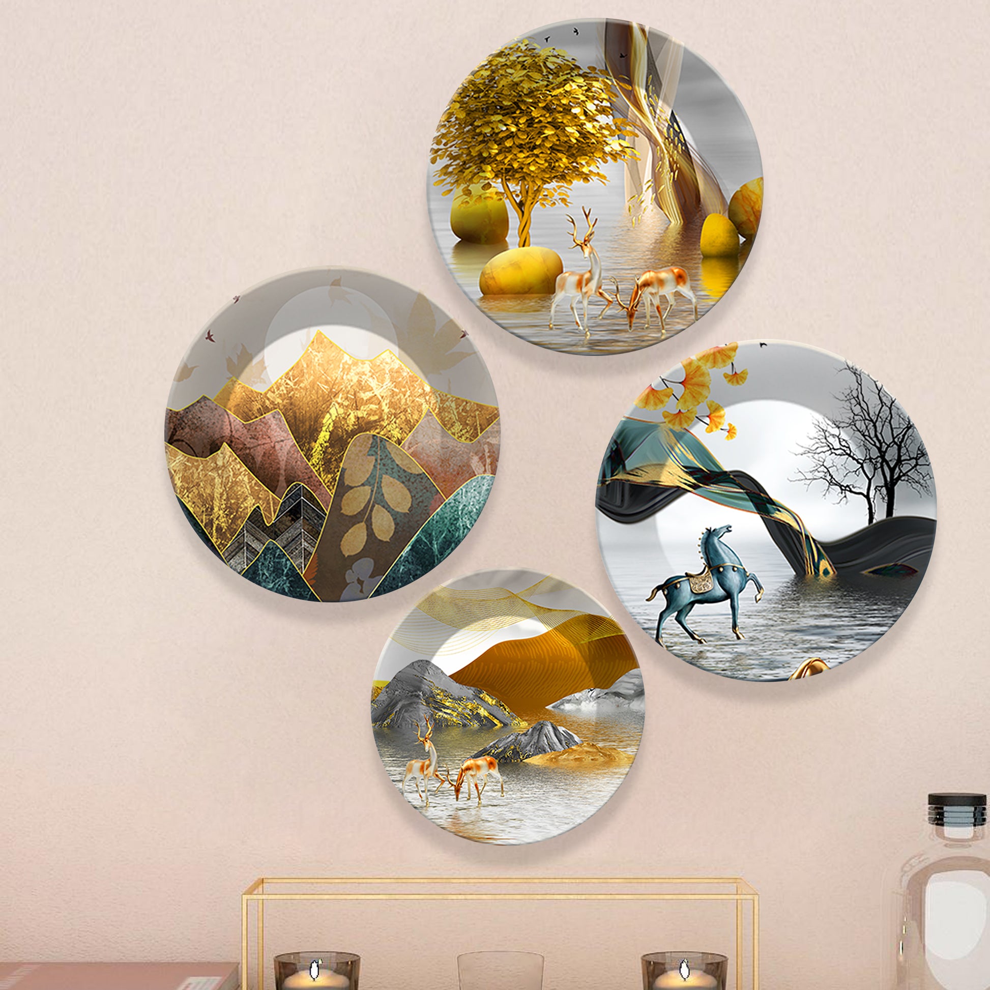 Fantasy Land Ceramic Wall Plates Painting Set of Four