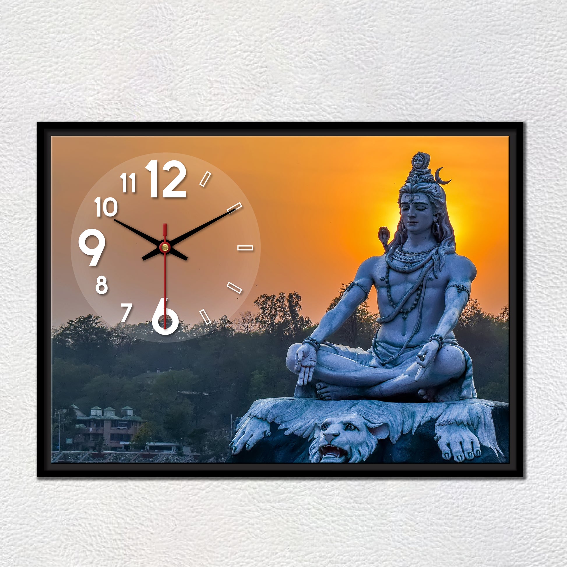 Floating Frame Lord Mahadev Wall Painting with Clock