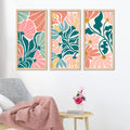 Floral abstract elements Botanical Art Wooden Wall Frame Set of Three