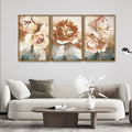 Floral Flower White Rose Floating Canvas Wall Painting Set of Three