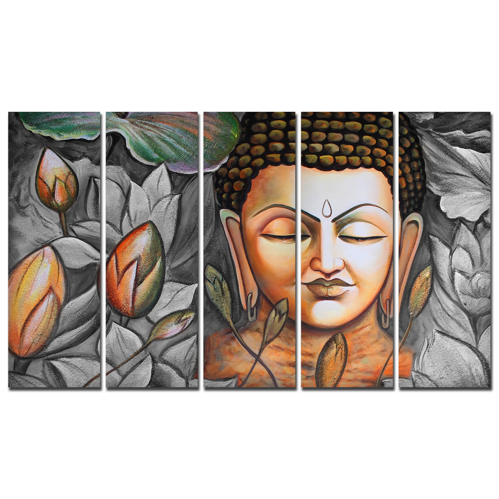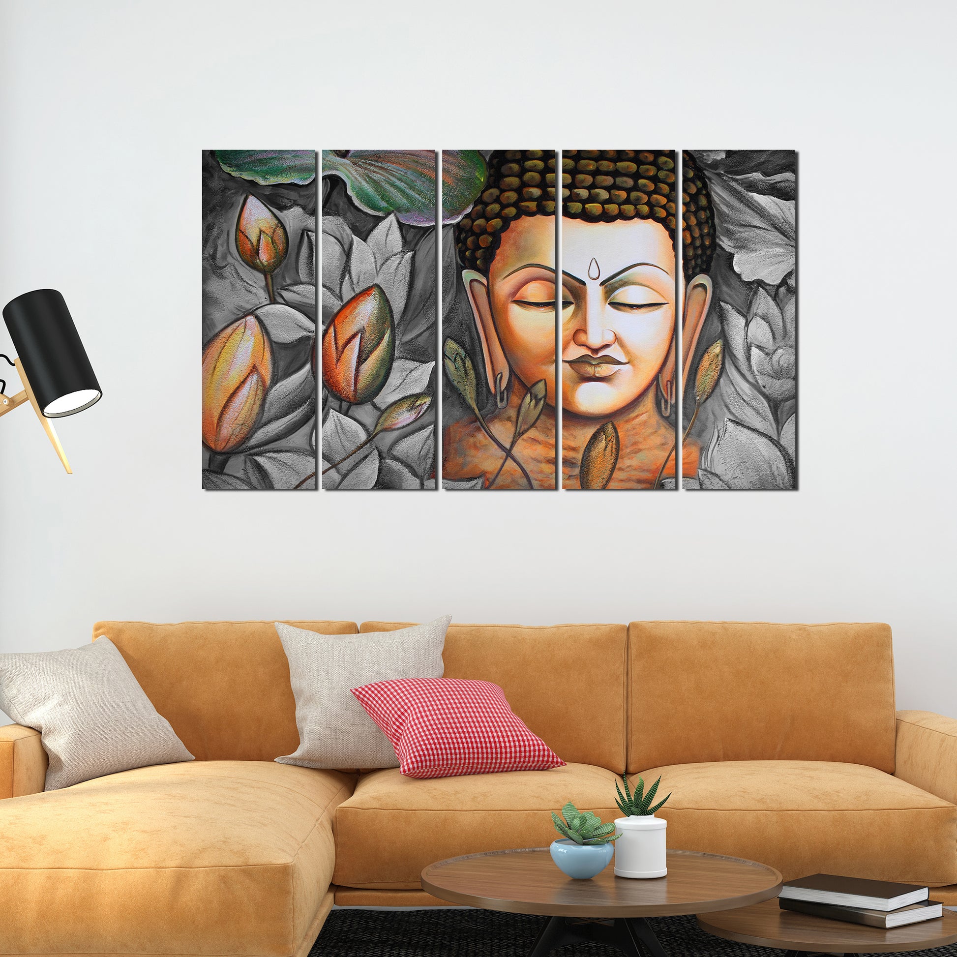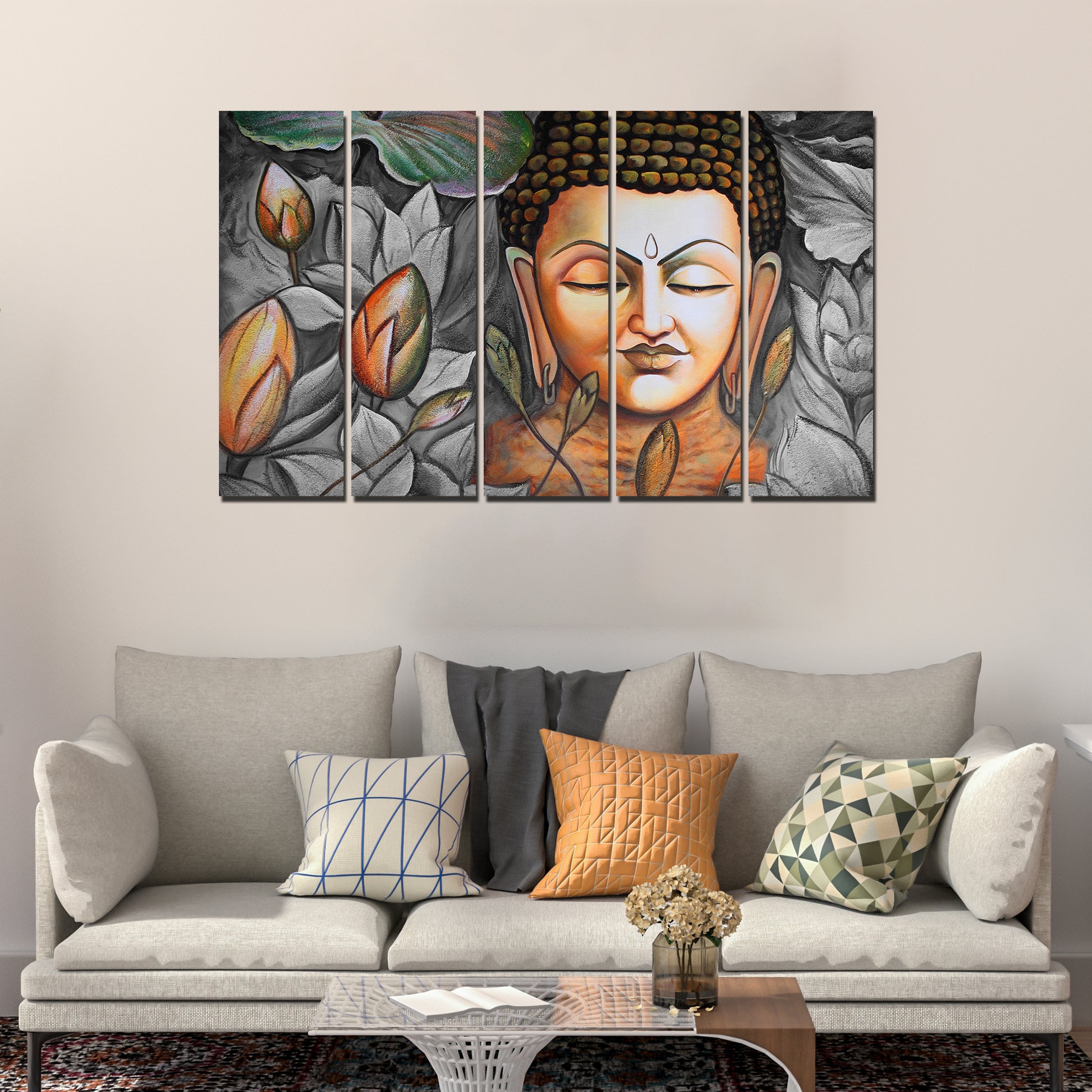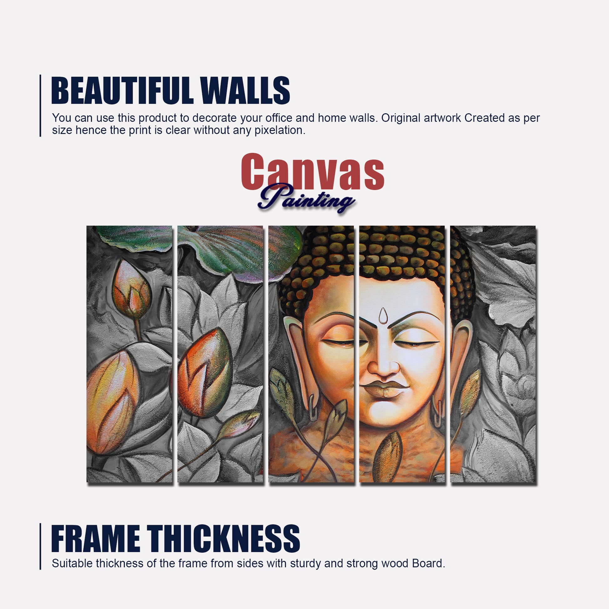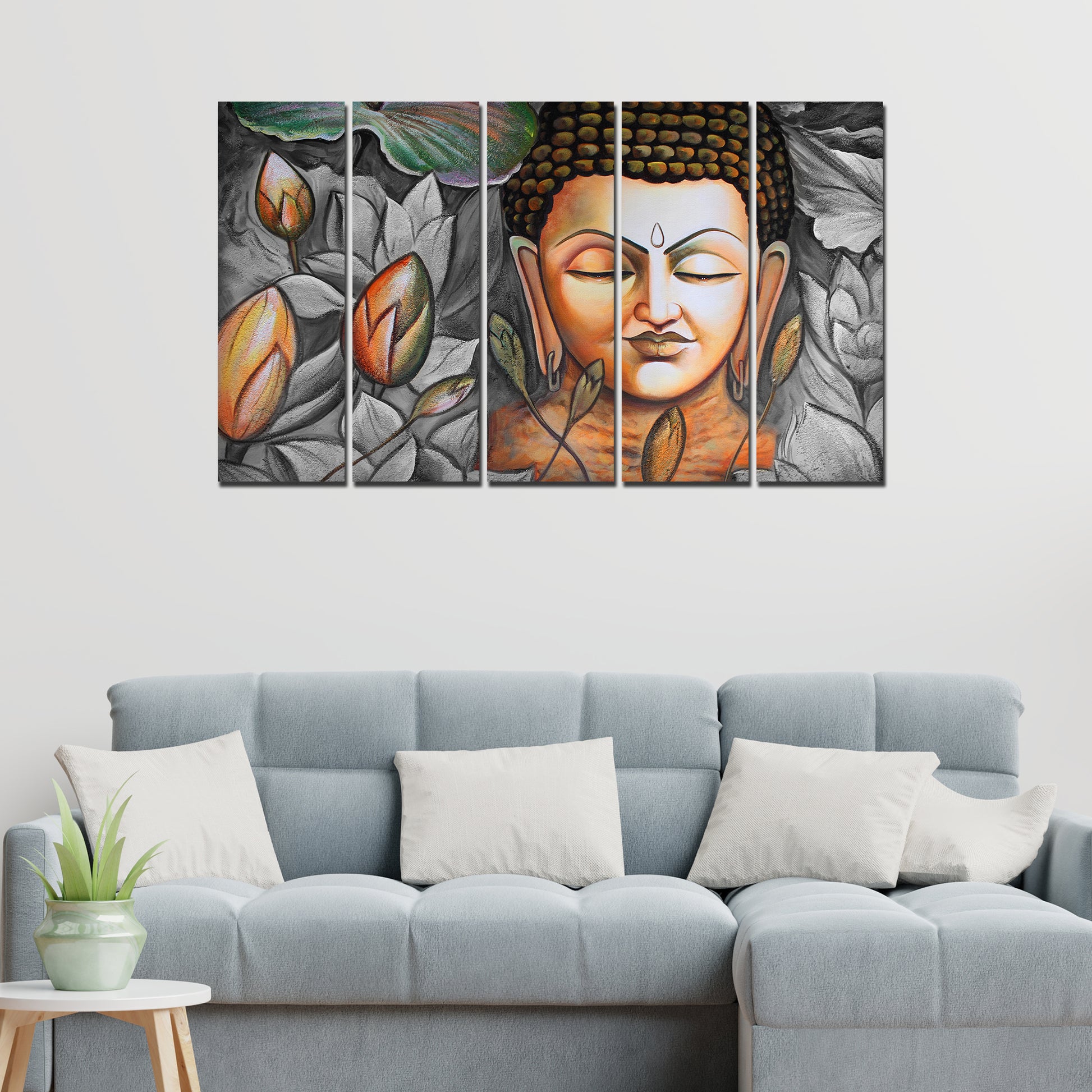 God Buddha Meditating Canvas Wall Painting Set of Five