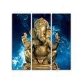 God Ganesha Golden Sculpture Wall Painting of Three Panels
