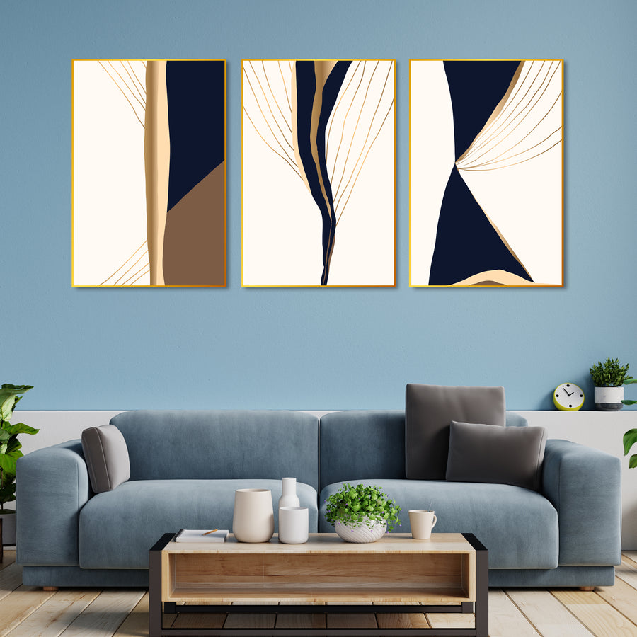 Gold & Black Modern Art Floating Canvas Wall Painting Set of Three