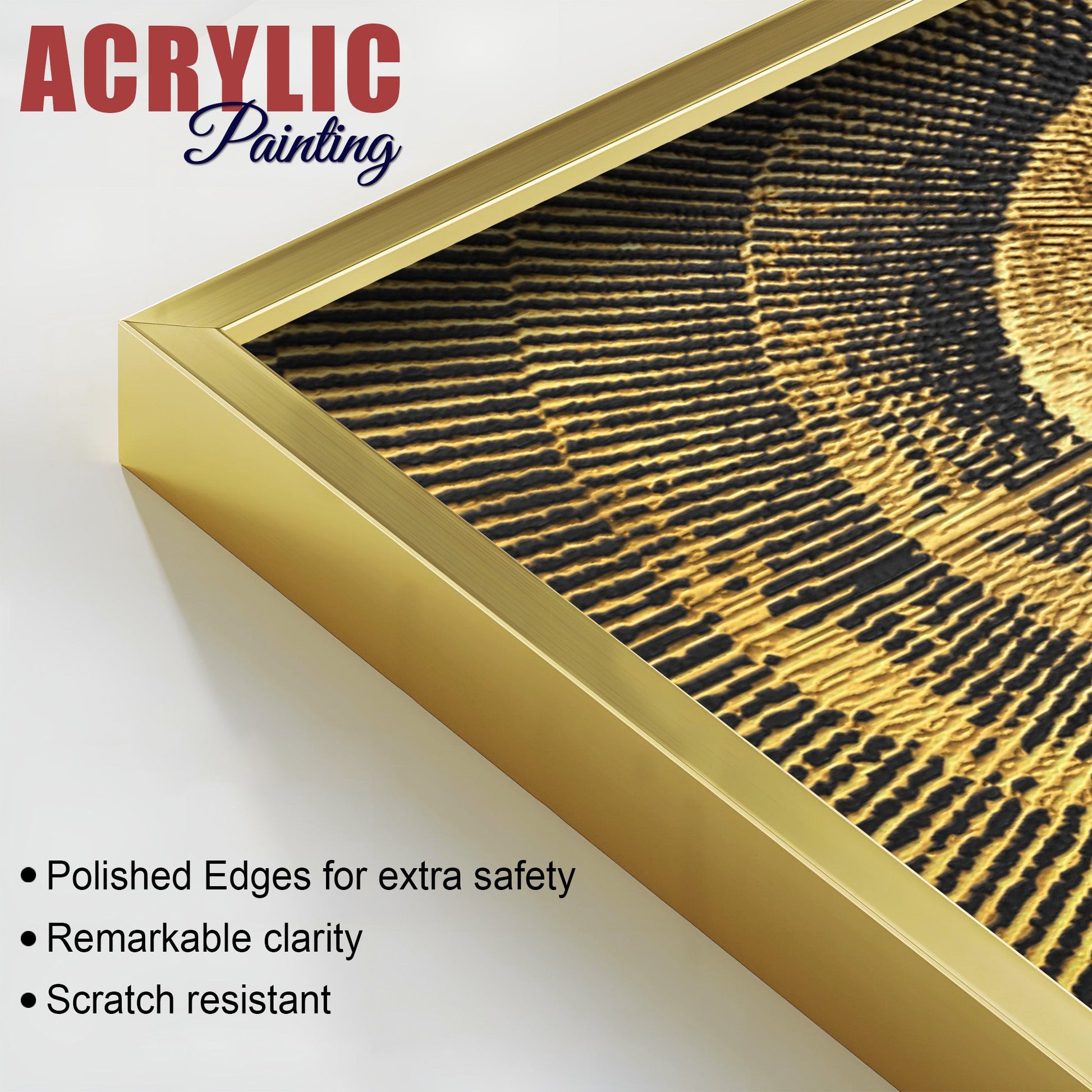 Golden 3D Pattern Acrylic Floating Wall Painting Set of 2