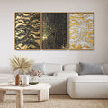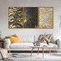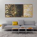 Golden Abstract Art Floating Canvas Wall Painting Set of Three
