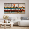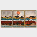 Golden Birds Flying Over Colorful Mountains Floating Canvas Wall Painting Set of Three