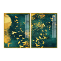 Golden Birds Group Flying Floating Acrylic Wall Painting Set of 2