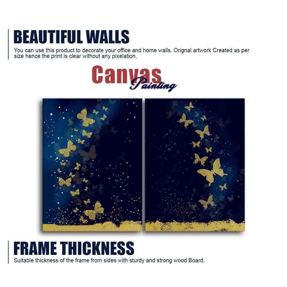 Golden Butterflies Canvas Wall Painting of Two Pieces