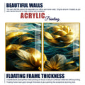Golden Dreamy Flower Acrylic Floating Wall Painting Set of 2