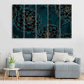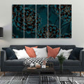 Golden Flowers Dahlia and Leaves Wall Painting of Five Pieces