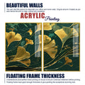 Golden Ginkgo Biloba Leaves Drawn Acrylic Floating Wall Painting Set Of 2