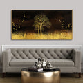 Golden Grass Trees with Birds in Dark Background Wall Painting