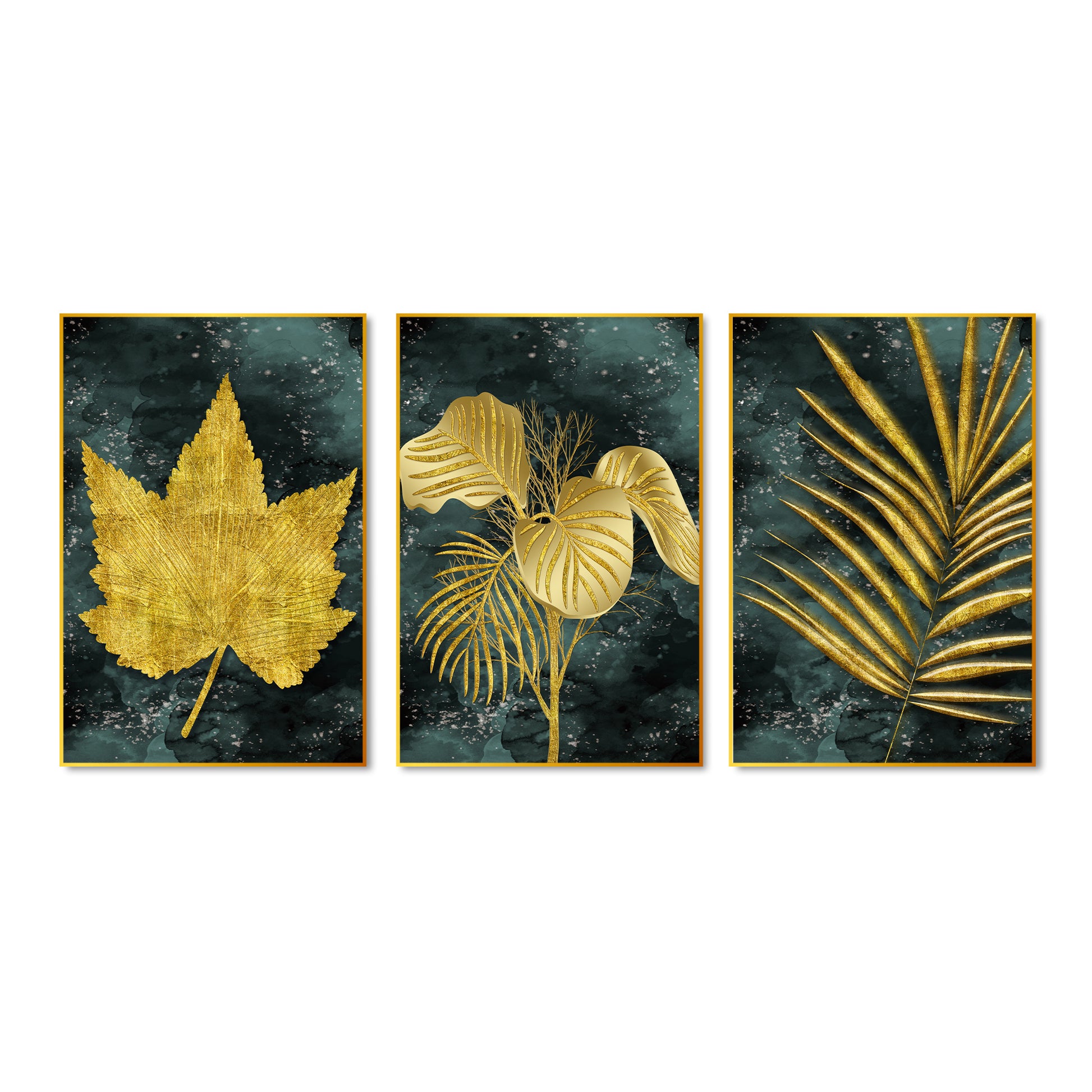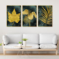Golden Leaves Floating Canvas Wall Painting Set of Three