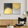 Golden Paint Texture Canvas Wall Painting of Two Pieces