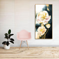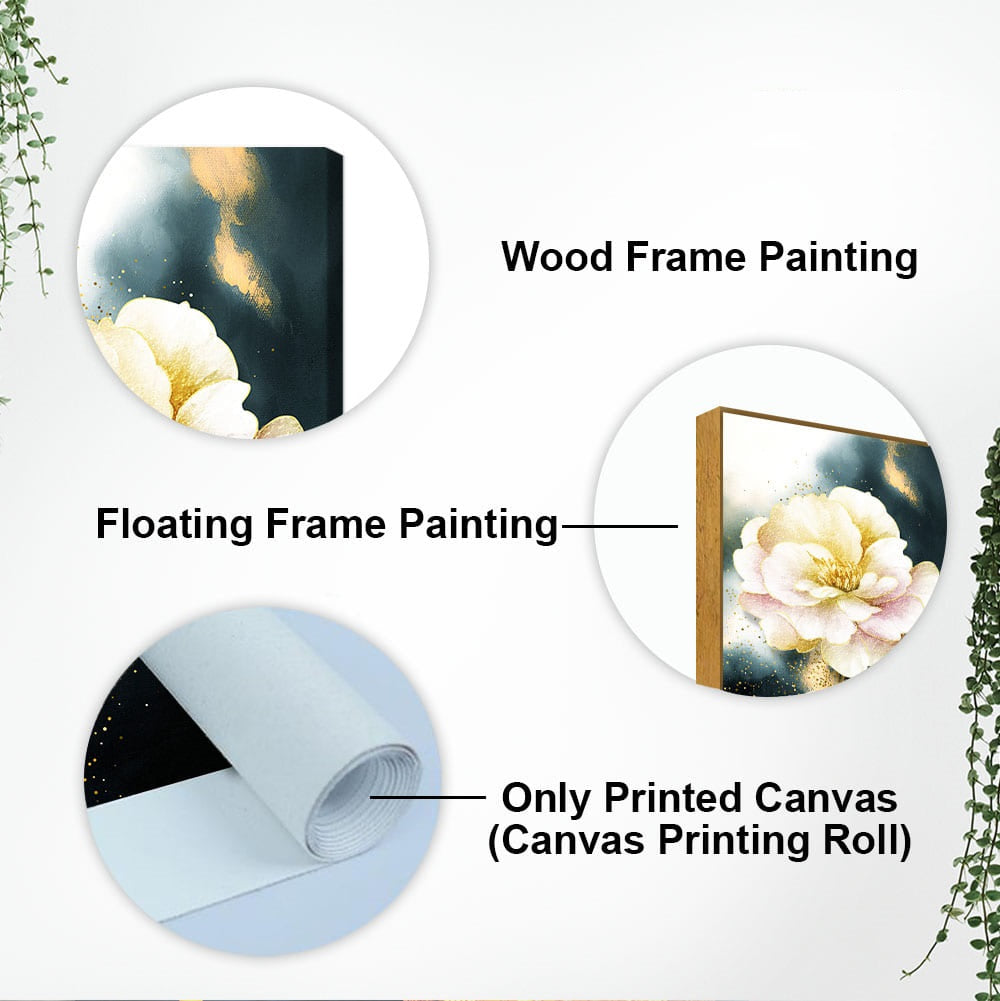 Golden Particles with White Flower Premium Canvas Wall Painting