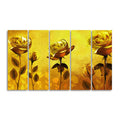 Golden Roses Five Pieces Canvas Wall Painting