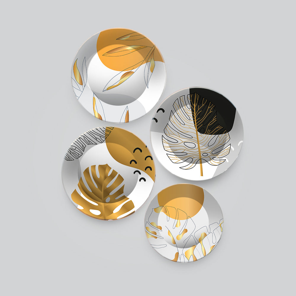 Golden Textured Leaves Art Wall Plates Painting Set of Four