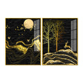 Golden Textured Mountains Art Premium Acrylic Floating Wall Painting Set Of 2