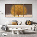 Golden Tree with Elements of gold textures Floating Canvas Wall Painting Set of Three