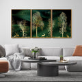 Golden Trees and Deer Modern Art Premium Floating Canvas Wall Painting Set of Three