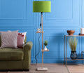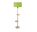 Green Fabric Double Shelf Floor Lamp with Natural Solid Wood Color Base