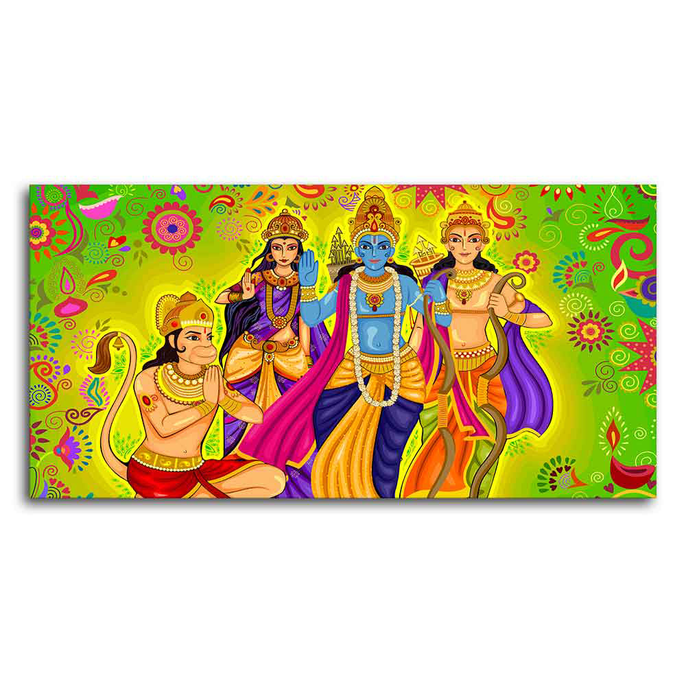 Hindu Gods Shree Ram Darbar Hanuman Premium Canvas Wall Painting