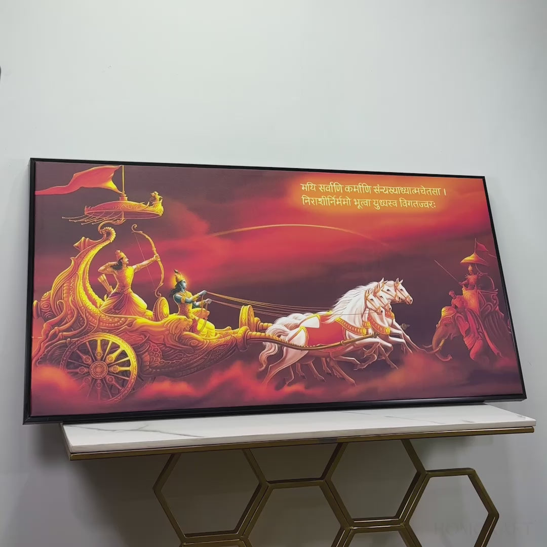 Krishna and Arjuna at Battlefield of Mahabharata Canvas Wall Painting