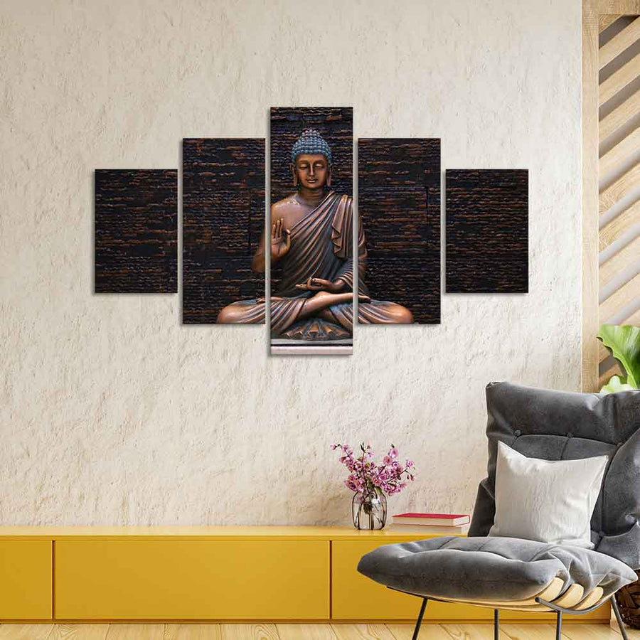 Lord Buddha Meditating Statue Five Pieces Canvas Wall Painting