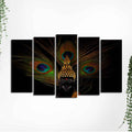 Lord Buddha With Peacock Feather Wall Painting of Five Pieces Set