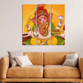 Lord Ganesh Canvas Wall Painting of Three Pieces