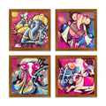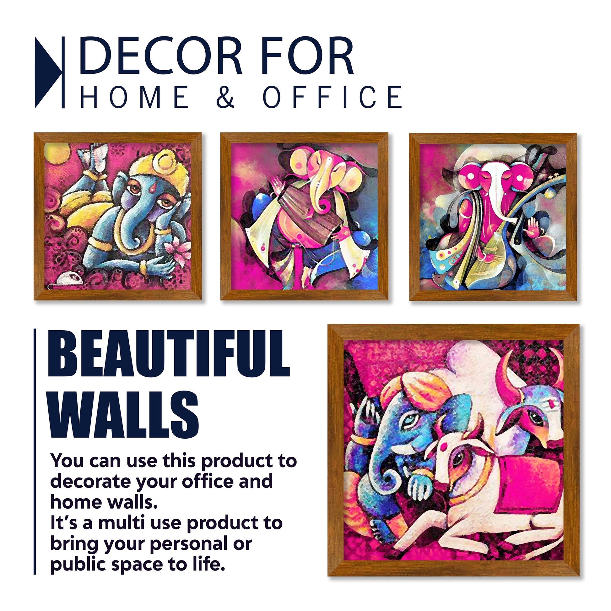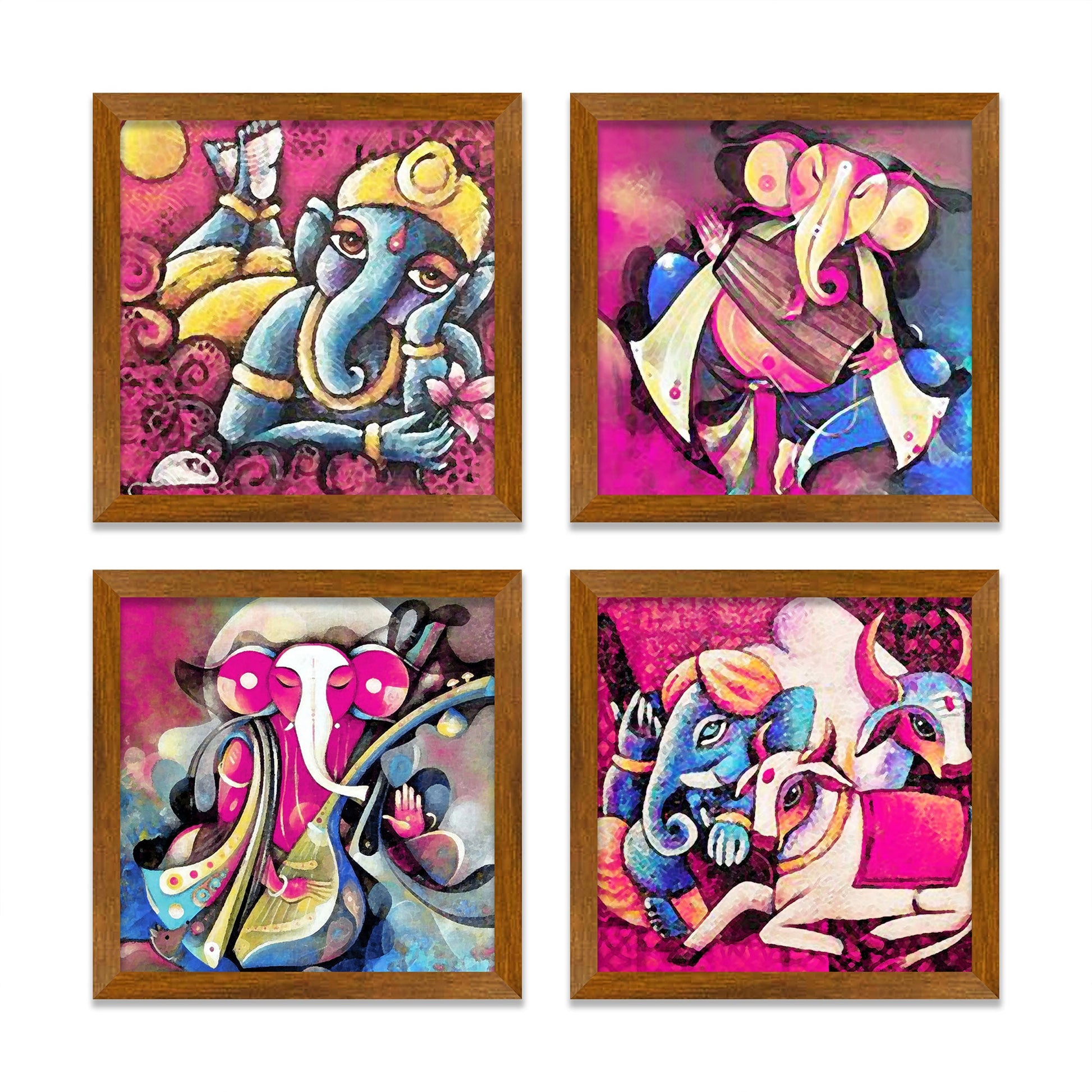 Lord Ganesha Abstract Art Wooden Wall Frame Set of Four