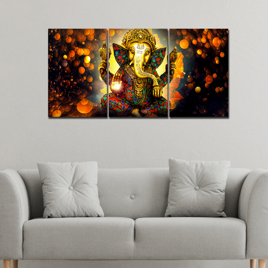 Lord Ganesha Canvas Wall Painting of 3 Pieces